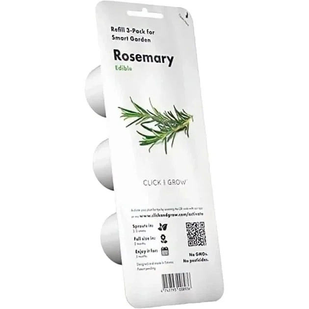 Фірмовий набір із трьох капсул, створений спеціально для системи розумного саду Smart Garden. У кожному картриджі використовується ретельно відібране насіння розмарину та інноваційний грунт Smart Soil, який рівномірно розподіляє вологу та забезпечує рослини всіма необхідними поживними речовинами. Завдяки цьому рослина розвивається здоровою і міцною, без застосування пестицидів, гормонів або ГМО.
