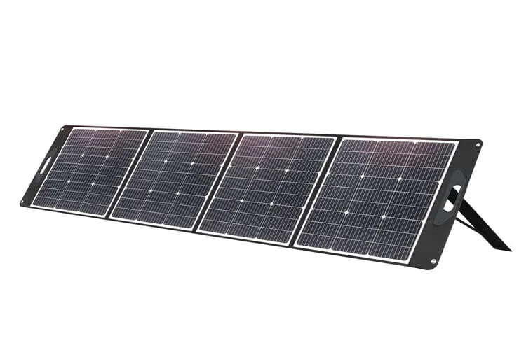 Складна конструкція, має ручку для перенесення і складається з чотирьох секцій (розміри в складеному вигляді: 560x565x50мм). Коефіцієнт конверсії 22-23,5%. Інтерфейси підключення MC4, Anderson, XT60, DC5.5 для з'єднання сонячних панелей між собою та іншими компонентами системи.