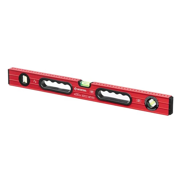 Шліфована нижня поверхня. Три рідинні протиударні капсули, одна з яких поворотна на 180°. З боків оснащений гумовими ручками.
