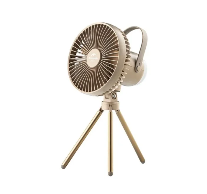 Вентилятор для кемпінгу включає вентилятор великої ємності, лампу 68 лм, підставку для штатива, знімну батарею на 8000 мАг.