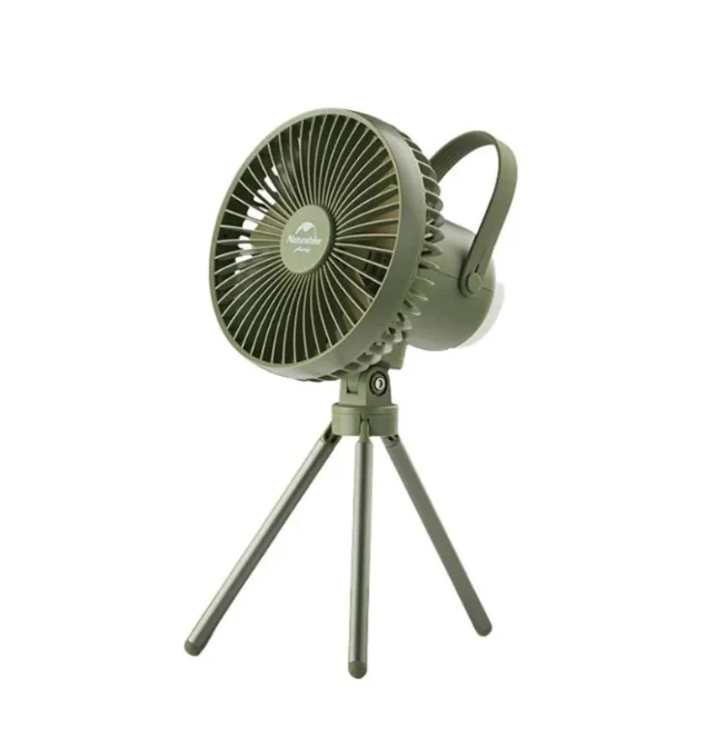 Вентилятор для кемпінгу включає вентилятор великої ємності, лампу 68 лм, підставку для штатива, знімну батарею на 8000 мАг.