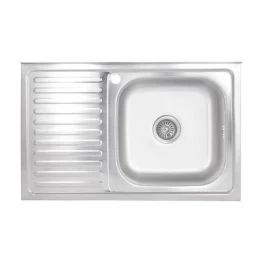 Кухонна мийка з нержавіючої сталі. Після миття бажано витирати насухо, щоб уникнути водяних плям. Не рекомендується використовувати абразивні губки, які можуть залишати подряпини.