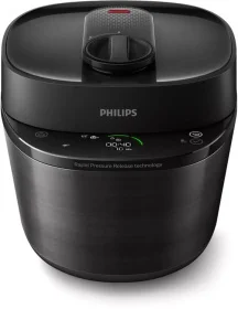 У такої моделі відкривати кришку під час можна лише за умови попереднього зниження тиску через спеціальний спускний клапан. Але при цьому збільшується тривалість циклу приготування страви.