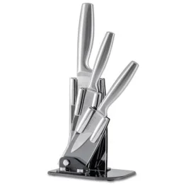 Найпопулярніший та практичний варіант для дому. Зручна підставка допомагає тримати ножі у порядку, швидко знаходити потрібний інструмент та захищає леза від пошкоджень. Якщо ви вирішили купити набір ножів з підставкою, зверніть увагу на матеріали: натуральне дерево виглядає дорого та екологічно, пластик – легкий та доступний, а нержавіюча сталь – міцна та довговічна.