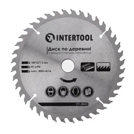 Круг пиляльний по дереву Intertool з твердосплавними напайками 180x22x1,5мм (CT-3043)